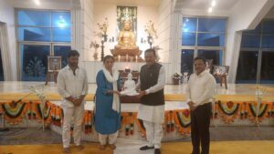 या प्रसंगी, ड्रॅगन पॅलेसच्या प्रमुख आणि माजी राज्यमंत्री, ॲड. सुलेखाताई कुंभारे यांनी मंत्री महोदयांचे पुष्पगुच्छ, शाल आणि तथागत गौतम बुद्धाची भव्य मूर्ती देऊन अत्यंत आपुलकीने आणि आदराने स्वागत केले. हे स्वागत समारंभ ड्रॅगन पॅलेसच्या शांत आणि आध्यात्मिक वातावरणात पार पडले, ज्यामुळे या भेटीला एक विशेष महत्त्व प्राप्त झाले.