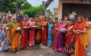 मंगळवार (दि.१) जुलै २०२५ ला दुपारी १ वाजता विवेकानंद नगर कन्हान येथील प्रदीप सेवक जी हुड यांचे घरून महिलांनी गाव पुजा शितला माता पुजनाची तयारी करून विवेकानंद नगर येथील श्री हनुमान मंदीरात पुजा अर्चना करून पुढे होमपाईप कंपनी येथील शितला माता मंदीरात पुजा, अर्चना व भजनाचा कार्यक्रम करित आपल्या गावात आणि परिसरात पाऊस चांगला पडुन शेती चांगली पिकुन धन, धान भरपुर पिकुन सर्व लोक सुखी होण्याची प्रार्थना करून उपस्थित सर्वाना प्रसाद वितरण करून गाव पुजा थाटात संपन्न करण्यात आली. या गाव पुजा कार्यक्रमाच्या यशस्वितेकरिता सौ वनिता कावळे, कुसुम मेहरकुळे, रजना भोयर, उषा बंड, विणा हुड, शारदा शिवरकर, शकुन पाहुणे, कविता इंगळुकर, उमा पाहुणे, वनिता चकोले, अरुणा ठाकरे, बावनकर ताई, चचाणे, शिला बावणे, लला उन्हाळे, जया घोटेकर, रेखा संतापे, साकोरे काकु, यादव मँडम, चिखले ताई, गिरी ताई आदीनी प्रामुख्याने उपस्थित राहुन सहकार्य केले.